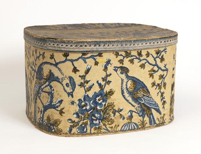 Popular in the United States from around 1800-1850, bandboxes were originally intended to store and transport men’s collar bands. Made of pasteboard and covered with either a wallpaper or a specially printed bandbox paper, the lively decorated containers soon began serving as hat boxes and general carryalls as well. The boxes of greatest historical interest were produced in the 1830s; these often contain scenes of historical interest such as innovations in transportation and famous entertainment venues. Cooper Hewitt's collection includes many fine examples of these rare and fascinating items. This highlights 62 objects from our collection.