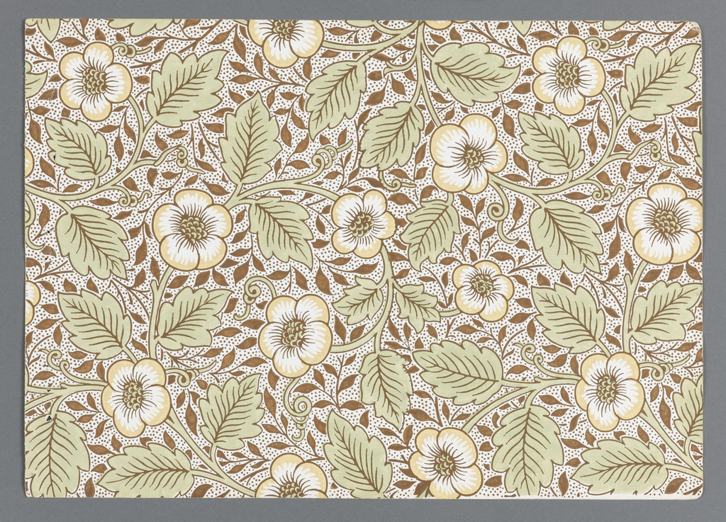 This is a Sidewall - sample. It was designed by Morris & Co. and manufactured by Jeffrey & Company. It is dated 1887 and we acquired it in 1980. Its medium is block-printed paper. It is a part of the Wallcoverings department.