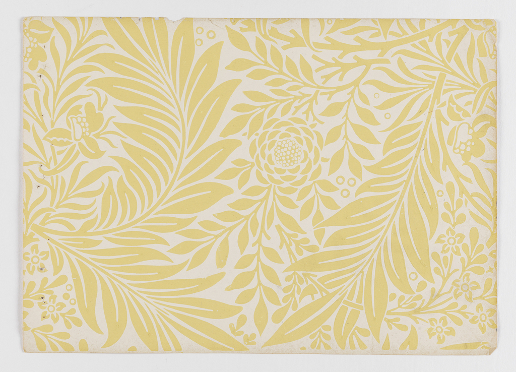 Sidewall - Sample, Larkspur; Designed by William Morris (British, 1834–1896); Manufactured by Jeffrey & Company (United Kingdom); Made for Morris & Co. (United Kingdom); block-printed paper; H x W x D: 27 x 37.5 x 6 cm (10 5/8 x 14 3/4 x 2 3/8 in.); Museum purchase from Smithsonian Regents Collections Acquisition Fund; 1980-46-1-150