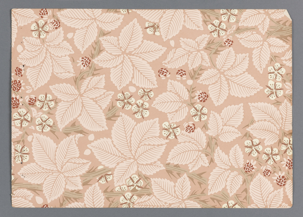 This is a Sidewall - sample. It was designed by William Morris and manufactured by Jeffrey & Company and made for Morris & Co.. It is dated 1888 and we acquired it in 1980. Its medium is block-printed paper. It is a part of the Wallcoverings department.