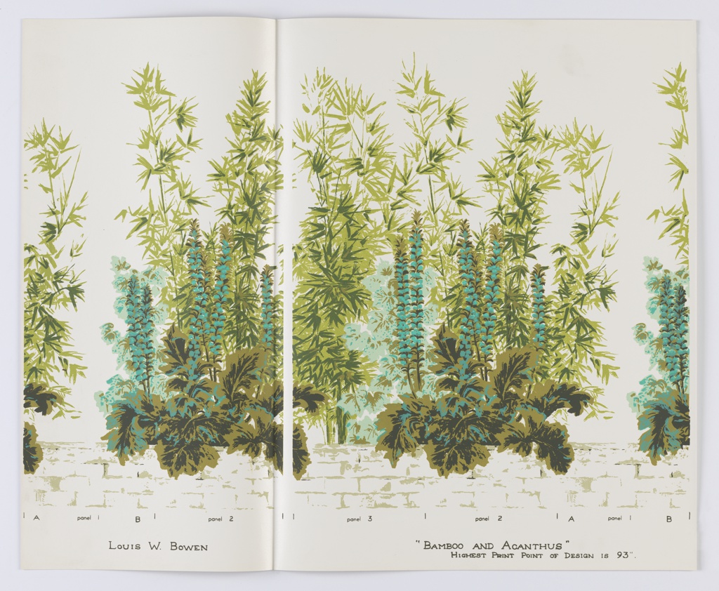 Mural Miniature, Bamboo and Acanthus; Possibly by Lanette Scheeline (American, 1910–2001); Manufactured by Louis W. Bowen, Inc. (United States); screen-printed paper; 39.5 x 68.5 cm (15 9/16 x 26 15/16 in.); Gift of Louis W. Bowen, Inc.; 1969-18-8-v