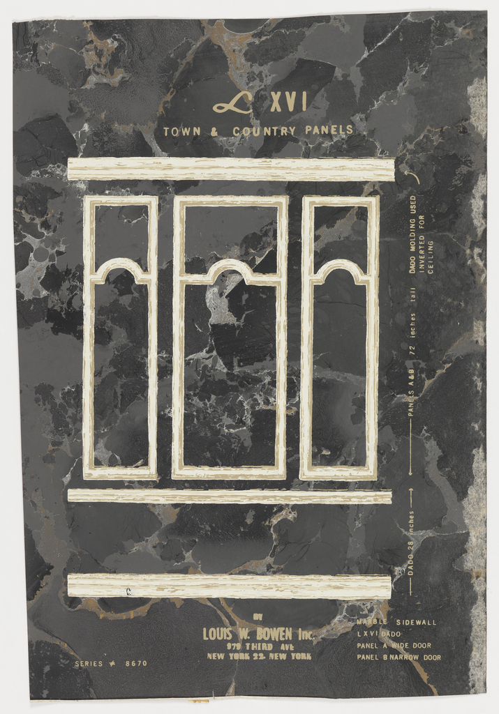 This is a Mural miniature. It was manufactured by Louis W. Bowen, Inc.. It is dated 1964–1968 and we acquired it in 1969. Its medium is luxograph print on paper. It is a part of the Wallcoverings department.