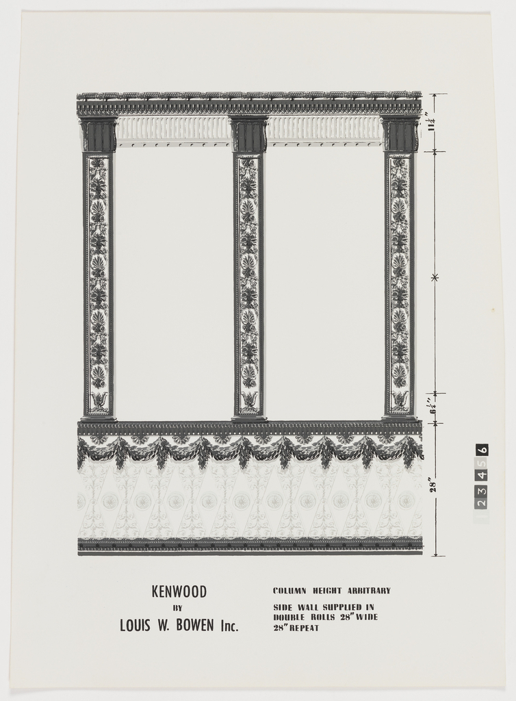 This is a Mural miniature. It was manufactured by Louis W. Bowen, Inc.. It is dated 1964–1968 and we acquired it in 1969. Its medium is screen-printed paper. It is a part of the Wallcoverings department.