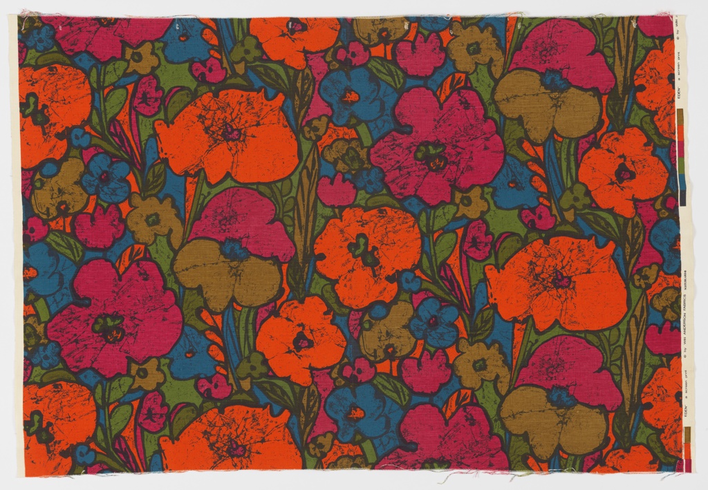 This is a Textile. It was manufactured by Win Anderson Fabrics and produced by Jack Lenor Larsen Incorporated. It is dated ca. 1965 and we acquired it in 2016. Its medium is cotton and its technique is screen printed. It is a part of the Textiles department.