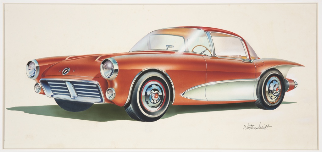 This is a Drawing. It was designed by Glen Winterscheidt and from the office of General Motors. It is dated ca. 1957 and we acquired it in 2017. Its medium is airbrush and ink on illustration board. It is a part of the Drawings, Prints, and Graphic Design department.