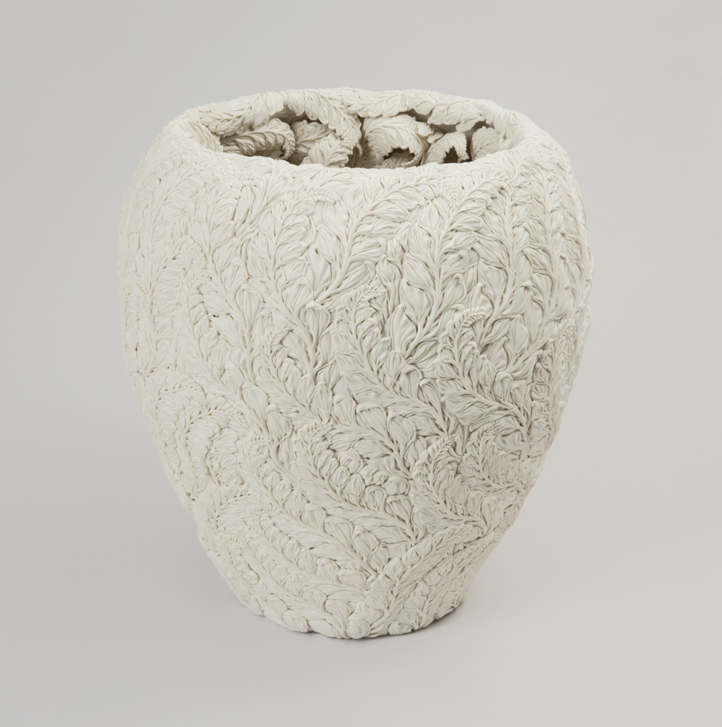 A Very Large Nazuna Vase; Made by Hitomi Hosono (Japanese, born 1978); moulded, carved and hand-built porcelain; H x diam.: 36 × 35 cm (14 3/16 × 13 3/4 in.); Museum purchase from the Charles E. Sampson Memorial Fund and through gift of Emily Rauh Pulitzer, Barbara E. Deisroth, Barbaralee Diamonstein-Spielvogel, and Martha Alexander; 2017-44-1