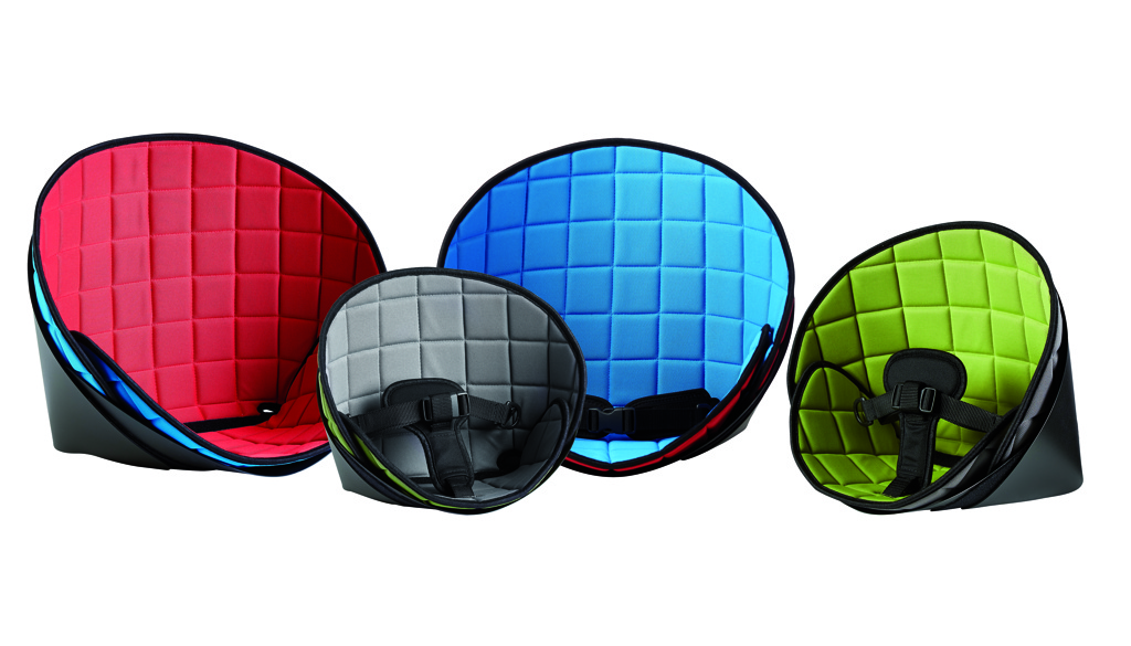 Designer Keira Gwynn originally created this simple, portable, and versatile seat as a student project for use as an indoor or outdoor aid in floor sitting or to add extra support attached to a chair. By enclosing the seat around the child’s pelvis and trunk, it provides stability without preventing movement, providing sensory feedback that creates a sense of calm and relaxation.