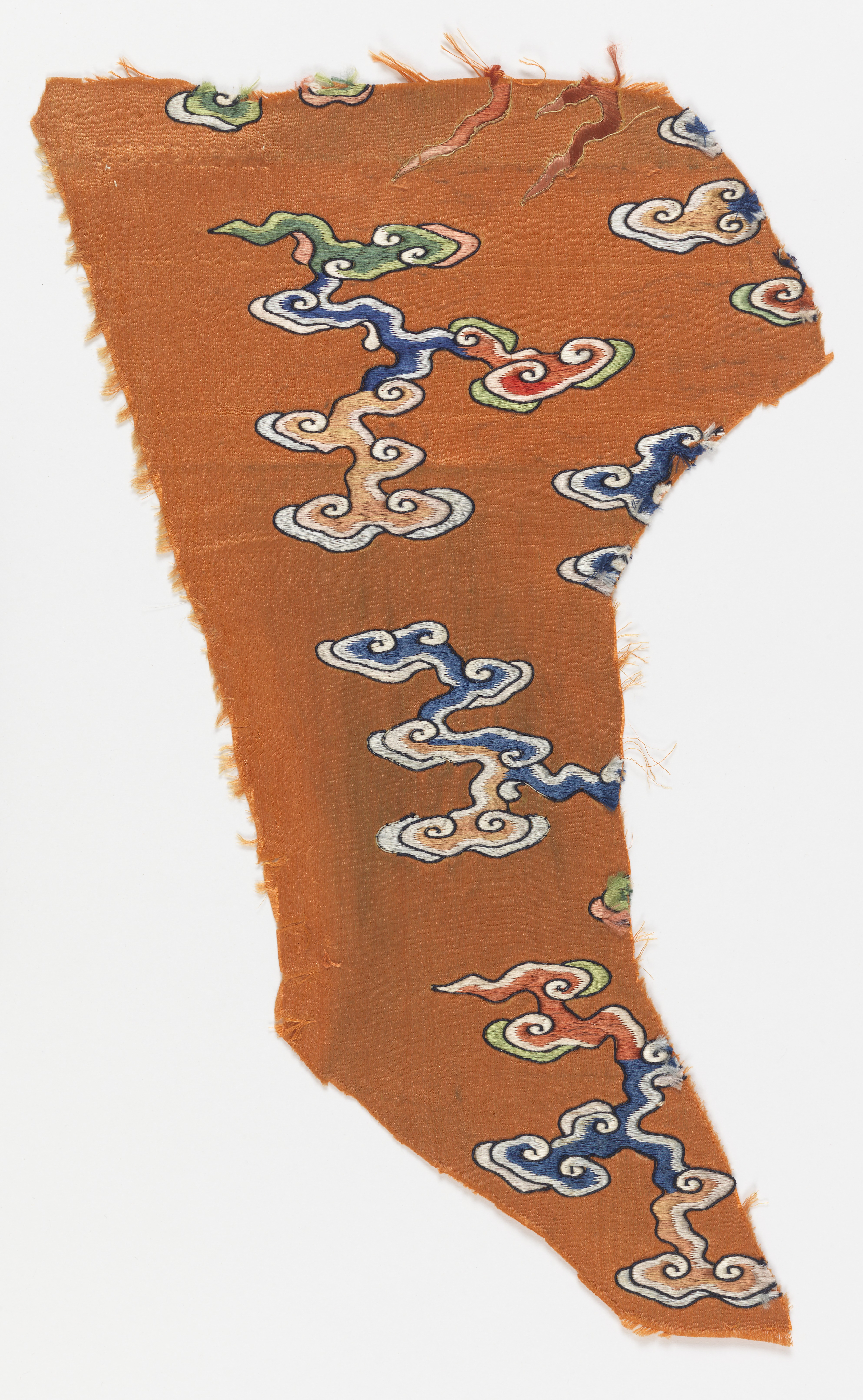 Fragments (China); silk, metallic thread; H x W (a): 18 x 37 cm (7 x 14 1/2 in.) H x W (b): 19 x 19.5 cm (7 1/2 x 7 5/8 in.); Gift of Mrs. James W. Pinchot; 1896-17-18-a,b