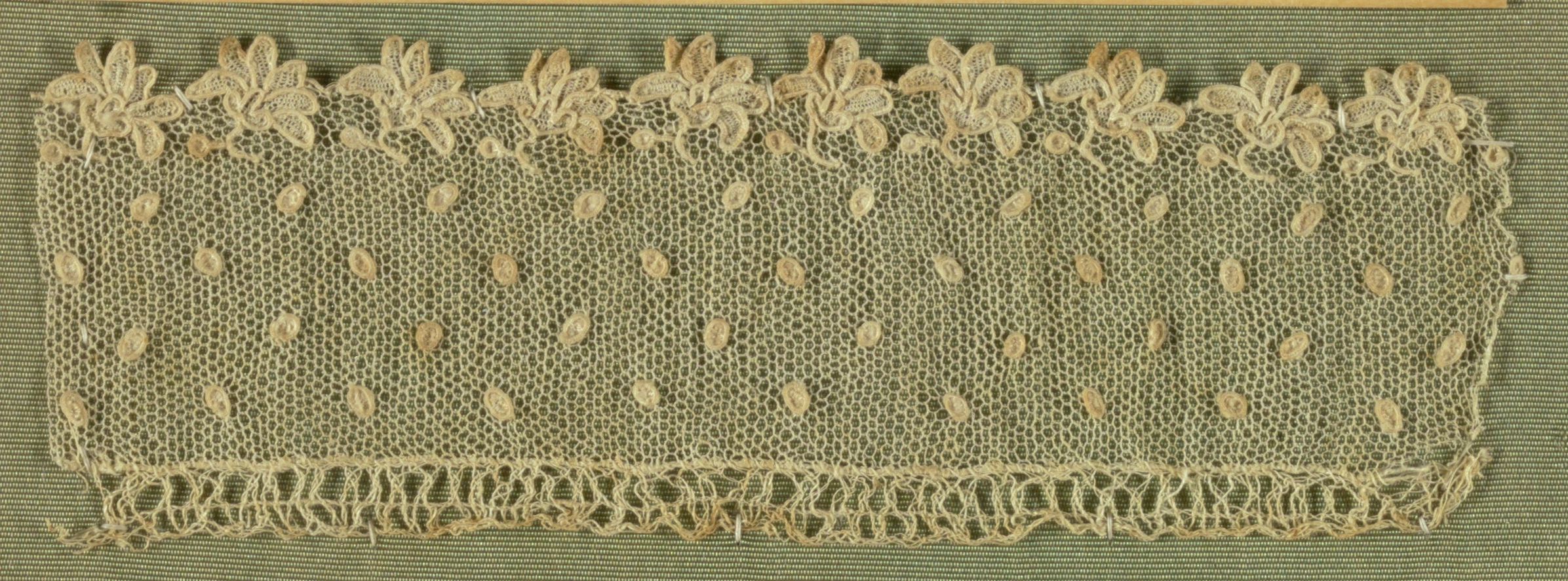 This is a Fragment. It is dated late 18th century. Its medium is linen and its technique is needle lace. It is a part of the Textiles department.