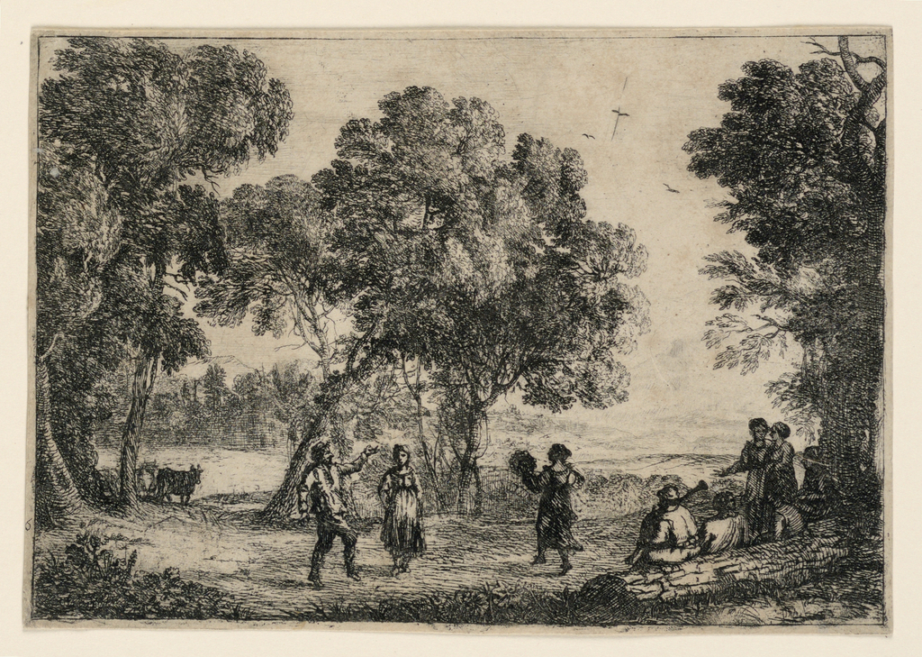 Print, The Country Dance; Print Maker: Claude Lorrain (French, 1600–1682); France; engraving on paper; Bequest of George Campbell Cooper; 1896-3-131