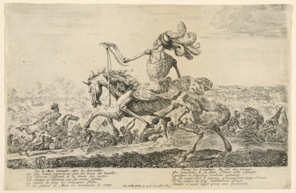 Print, Death During a Battle; Print Maker: Stefano della Bella (Italian, 1610–1664); Italy; etching on paper; 19.5 × 29.7 cm (7 11/16 × 11 11/16 in.); Bequest of George Campbell Cooper; 1896-3-196