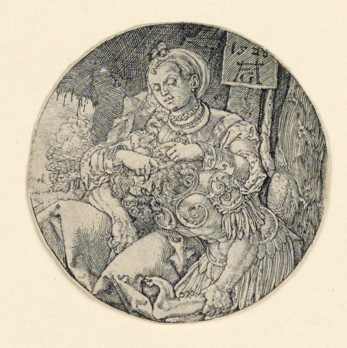 Monogram of Aldegrever and date "1528" on tablet, upper right.