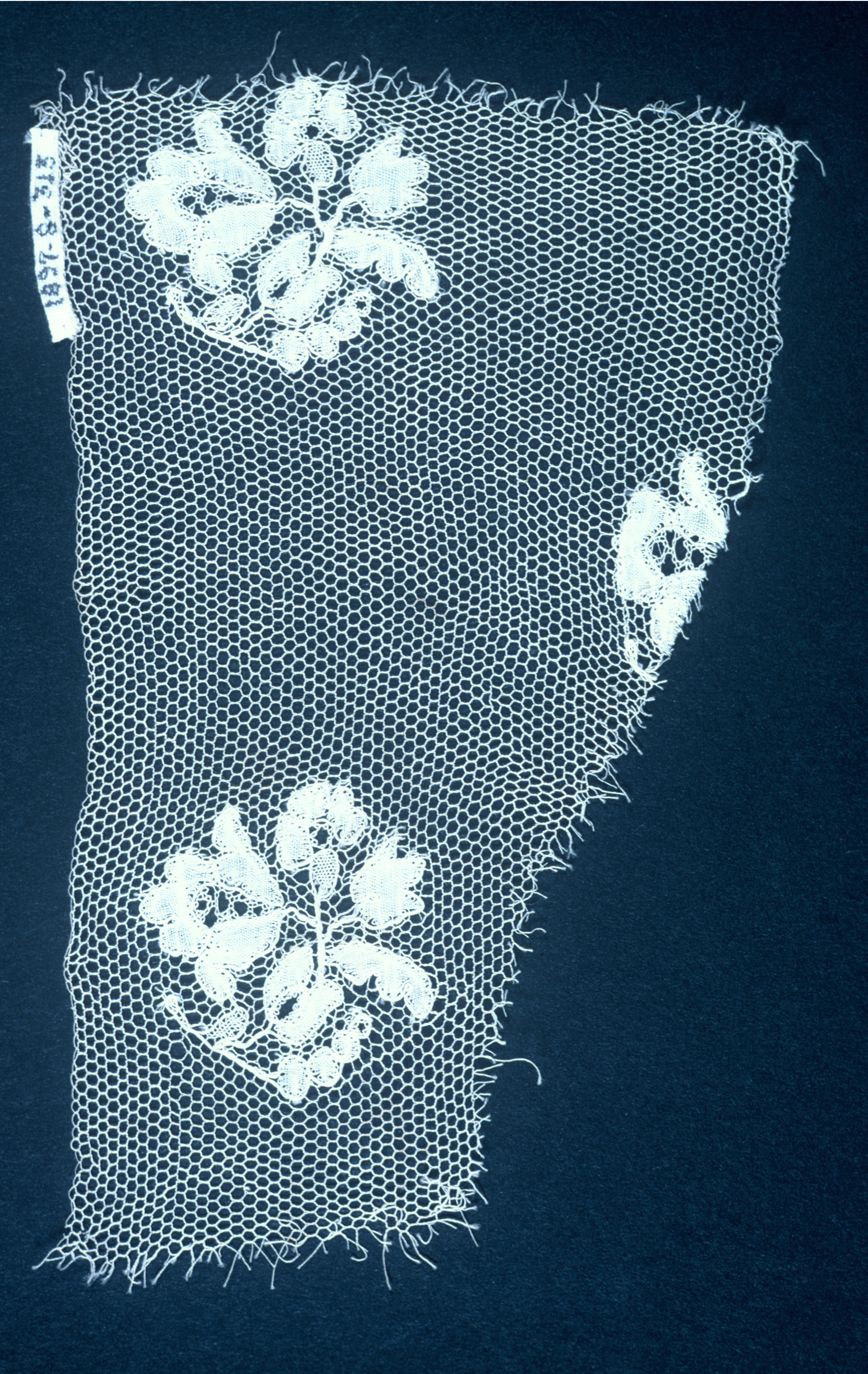 This is a Fragment. It is dated 19th century. Its medium is linen and its technique is bobbin lace made in the lille style with heavy outlining thread. It is a part of the Textiles department.