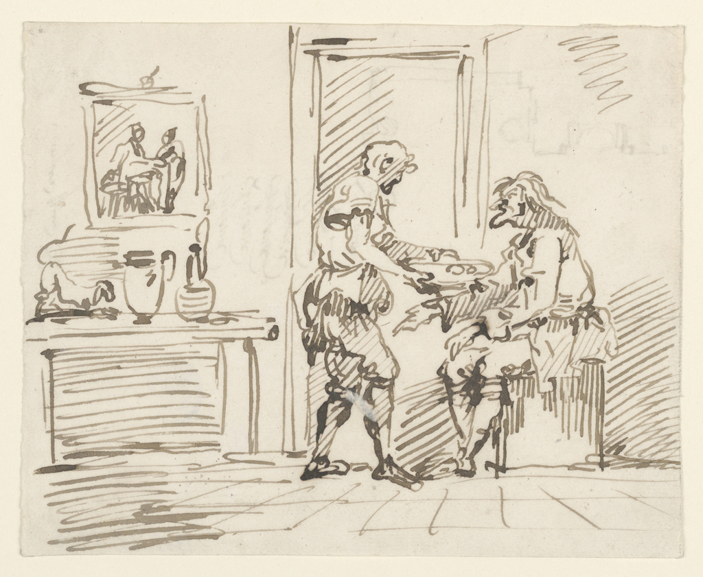 Drawing, A genre scene; Carlo Marchionni (Italian, 1702–1786); Italy; pen and black ink on laid paper; 17.9 x 14.5 cm (7 1/16 x 5 11/16 in.); Museum purchase through gift of various donors; 1901-39-1978