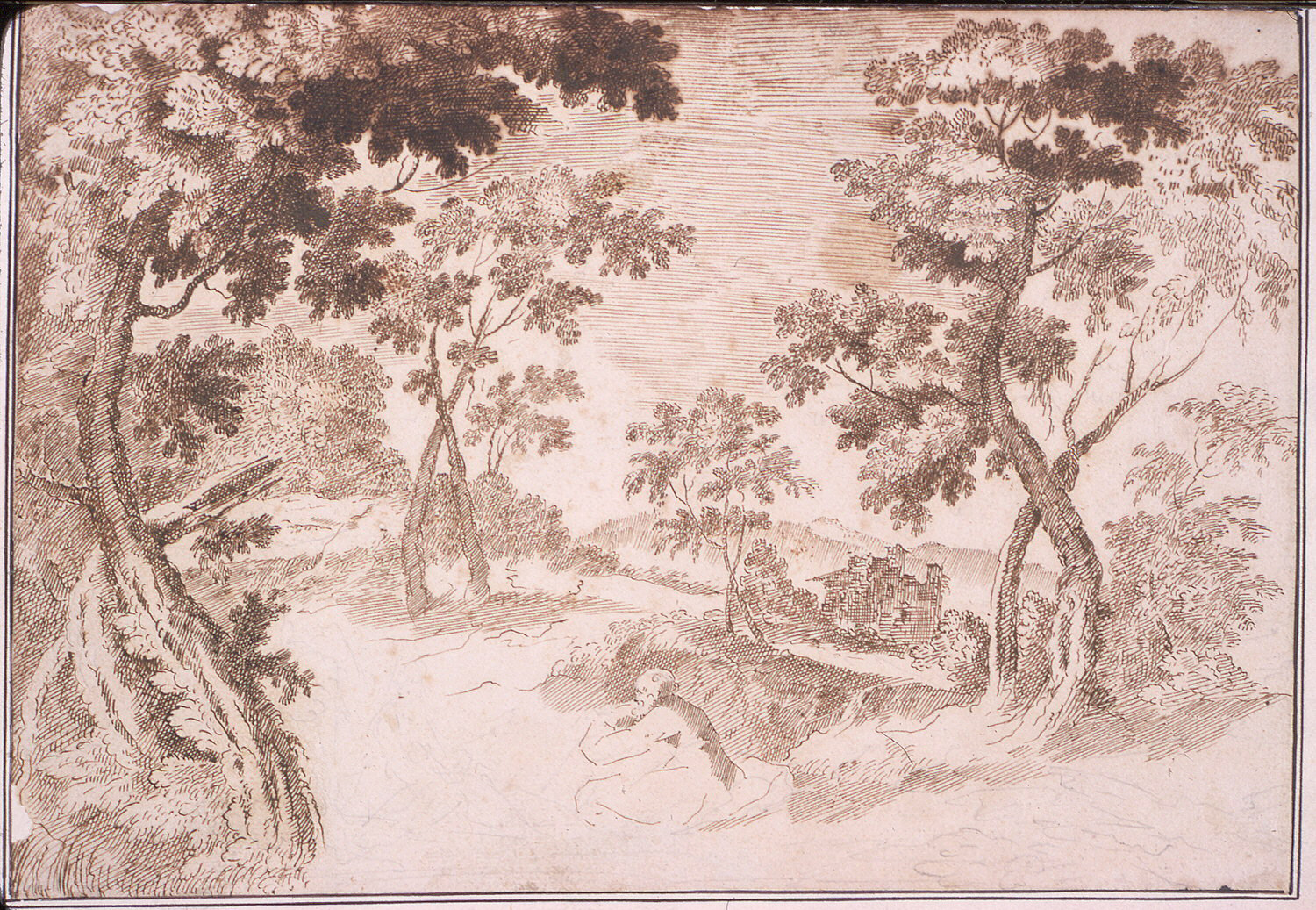 Drawing, Landscape; Italy; black chalk, pen and ink on paper; H x W: 23.5 × 16.5 cm (9 1/4 × 6 1/2 in.); Museum purchase through gift of various donors; 1901-39-2