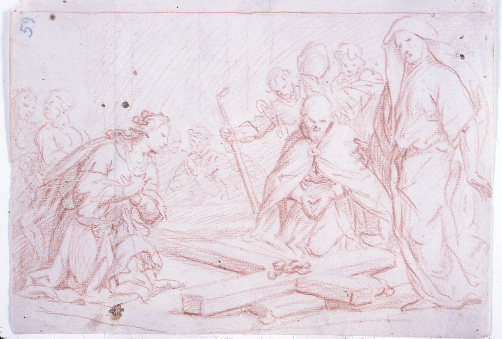 Drawing, Finding of the Cross; Attributed to Luca Giordano (Italian, 1634 - 1705); Italy; red chalk on cream laid paper; 27.3 x 20.2 cm (10 3/4 x 7 15/16 in.); Museum purchase through gift of various donors; 1901-39-2713
