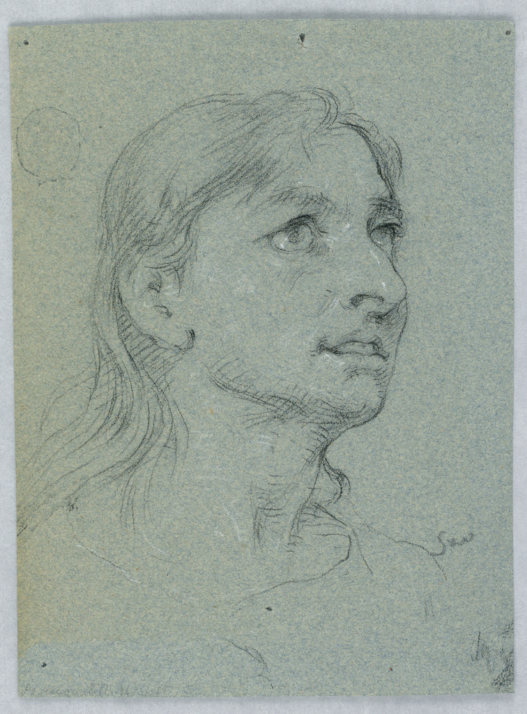 Drawing, Study for a Portrait; Italy; graphite and white crayon on fibrous blue paper; Museum purchase through gift of various donors; 1901-39-3052