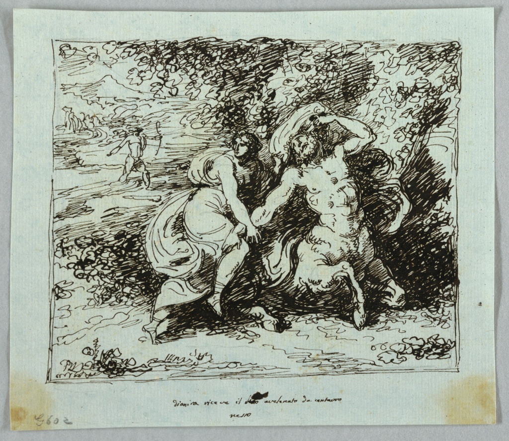 This is a Drawing. It was designed by Felice Giani. We acquired it in 1901. Its medium is pen and brown ink on light blue paper. It is a part of the Drawings, Prints, and Graphic Design department.