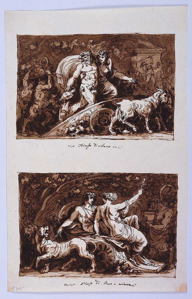 Below upper image in pen and brown ink: Trionfo di Sileno Below lower image in pen and brown ink: Trionfo di Bacco e arianna