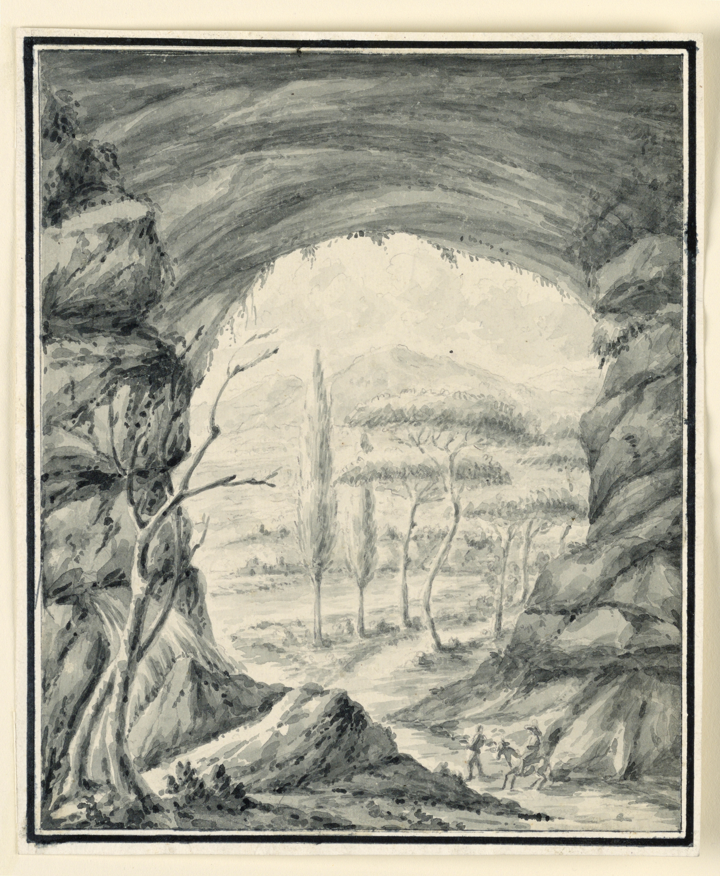 Drawing, Figures on a Rocky Pass; Italy; black chalk, brush and black wash, on paper; 22.7 x 18.8 cm (8 15/16 x 7 3/8 in.); Museum purchase through gift of various donors; 1901-39-340