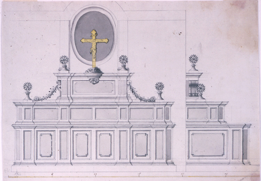 Drawing, Project for a Case in a Vestry with Alternative Suggestions; Italy; graphite, pen and black ink, brush and watercolor on paper; H x W: 30.1 × 42.5 cm (11 7/8 × 16 3/4 in.); Museum purchase through gift of various donors; 1901-39-547