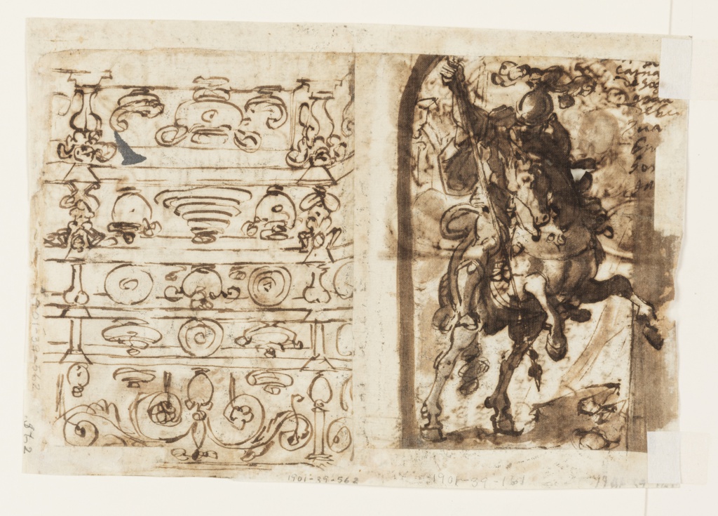 This is a Drawing. It was created by Jan van der Straet, called Stradanus. It is dated ca. 1590s and we acquired it in 1901. Its medium is pen and brown ink, brush and brown wash on two joined sheets of paper. It is a part of the Drawings, Prints, and Graphic Design department.