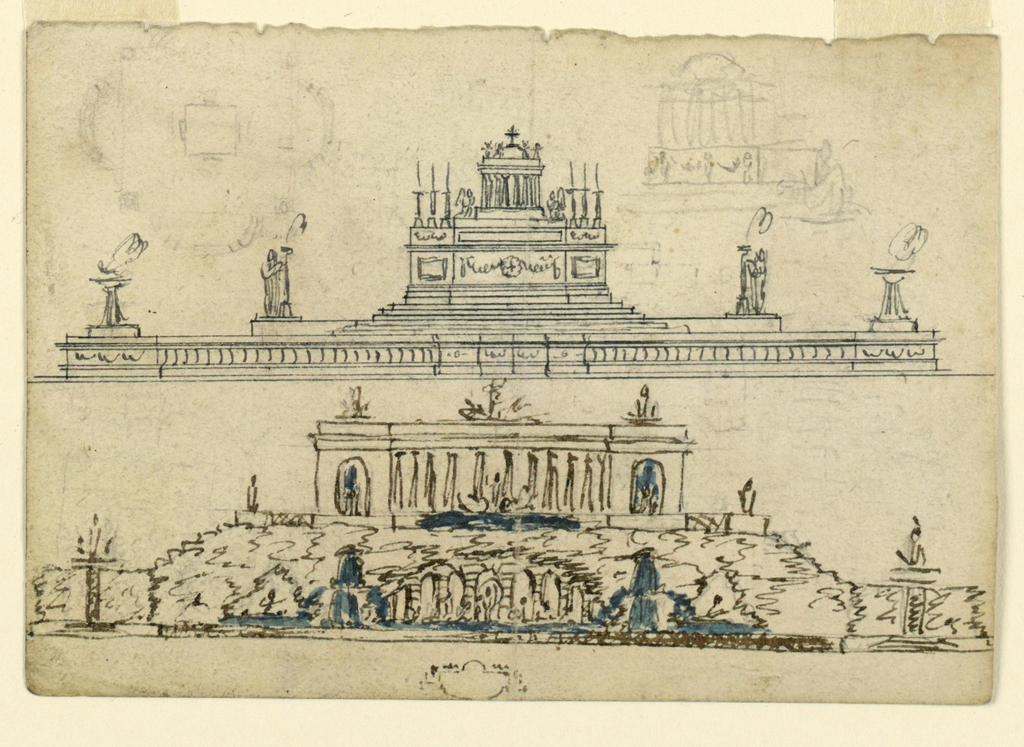 Drawing, Designs for Monuments; Italy; graphite, pen and ink, brush and watercolor on paper; Museum purchase through gift of various donors; 1901-39-708