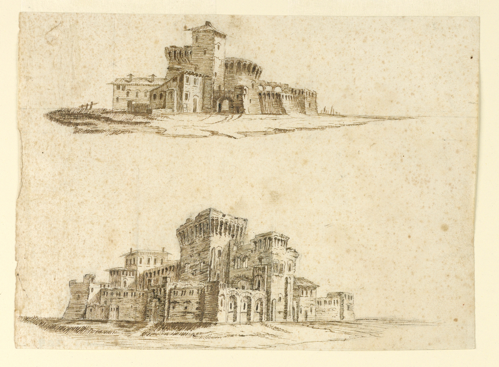 Drawing, Two Fortresses; graphite, pen and ink, brush and wash on paper; Museum purchase through gift of various donors; 1901-39-709