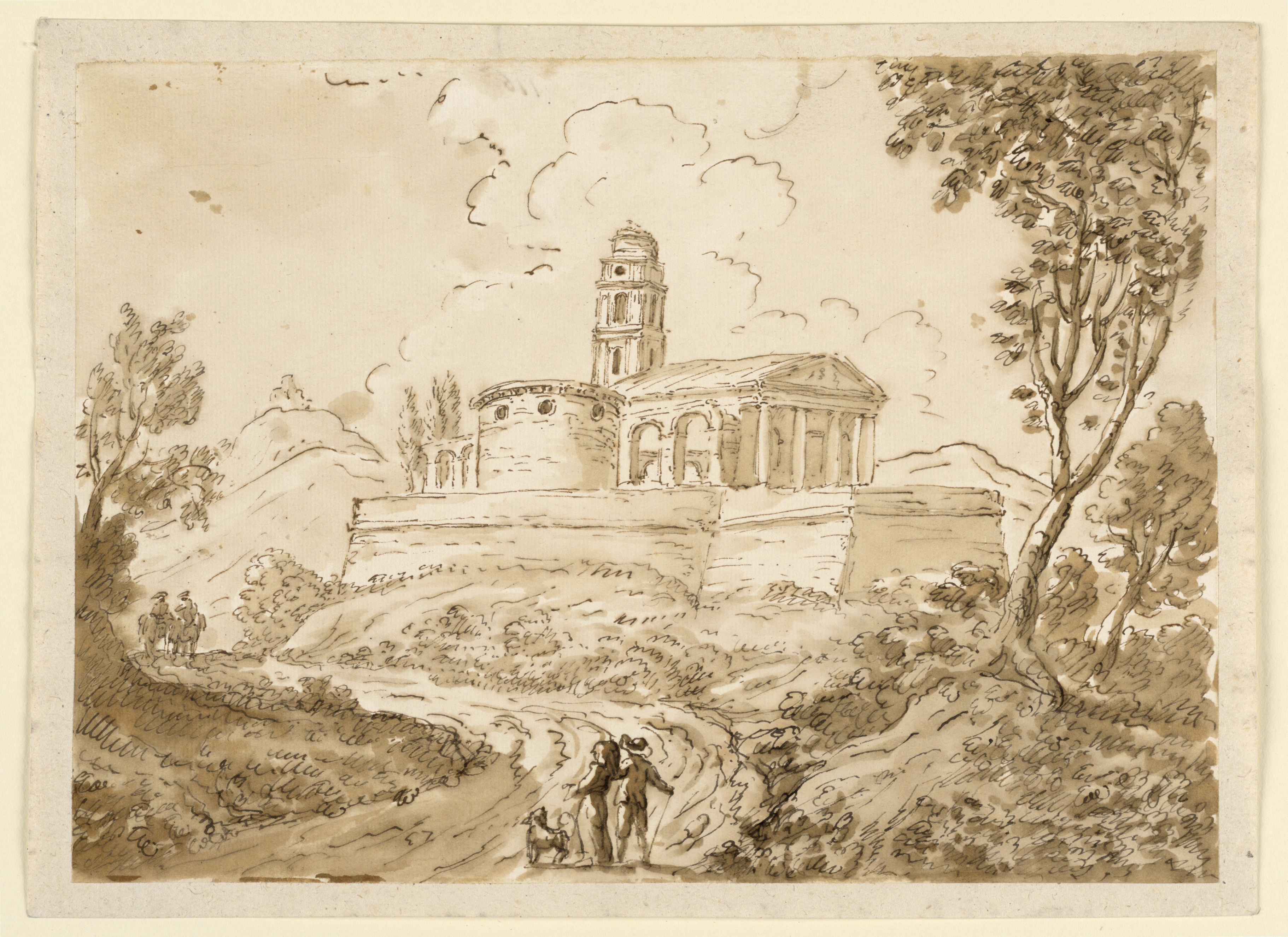 Drawing, Figures on Road; Carlo Marchionni (Italian, 1702–1786); Italy; pen and ink, brush and watercolor on paper; Museum purchase through gift of various donors; 1901-39-719