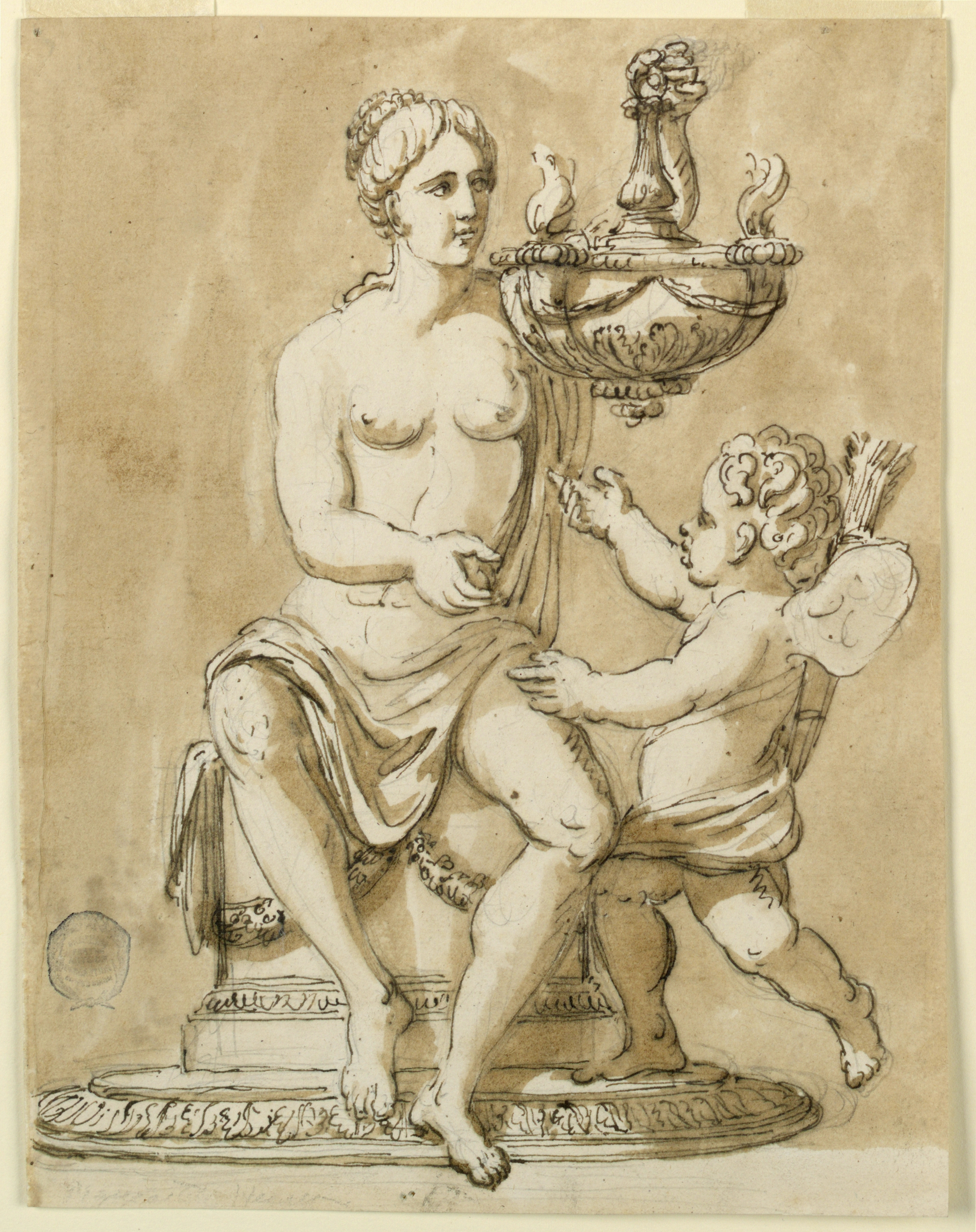Drawing, Oil lamp; Architect: Giuseppe Barberi (Italian, 1746–1809); Italy; pen and brown ink, brush and brown wash, graphite on off-white laid paper, lined; Image: 22.9 x 17.8 cm (9 x 7 in.); Museum purchase through gift of various donors; 1901-39-956
