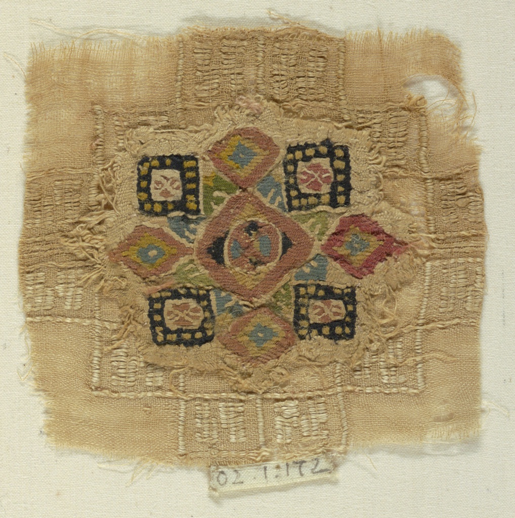 Fragment (Egypt); warp: s-spun linen. wefts: s-spun linen, s-spun wools; H x W: 6 x 7 cm (2 3/8 x 2 3/4 in.); Gift of John Pierpont Morgan; 1902-1-172