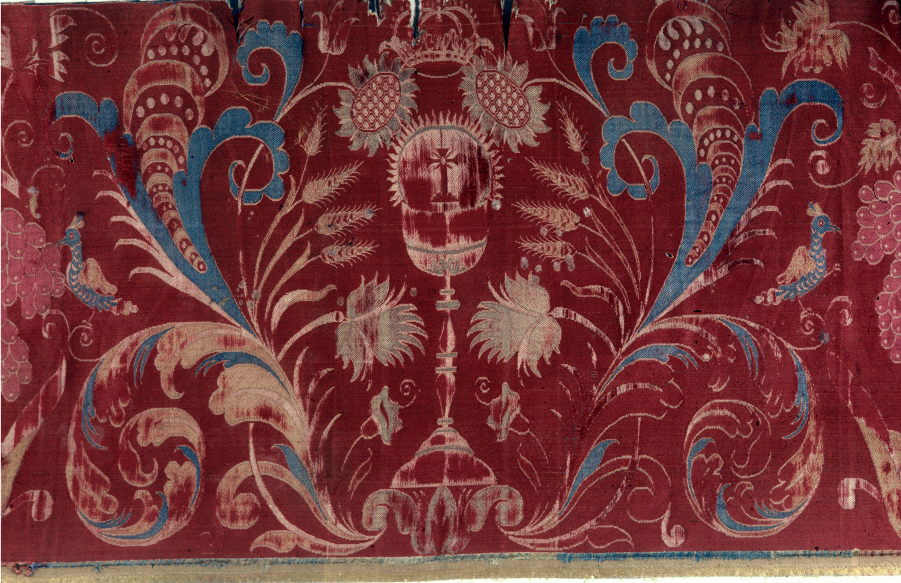 This is a Border. It is dated 17th century and we acquired it in 1902. Its medium is silk and its technique is 7&1 satin with complementary wefts bound in 3/1 twill. It is a part of the Textiles department.