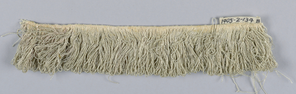 This is a Fringe. It is dated 17th century and we acquired it in 1905. Its medium is silk and its technique is woven. It is a part of the Textiles department.