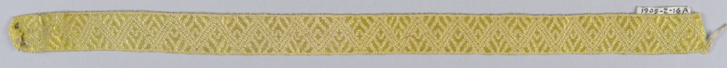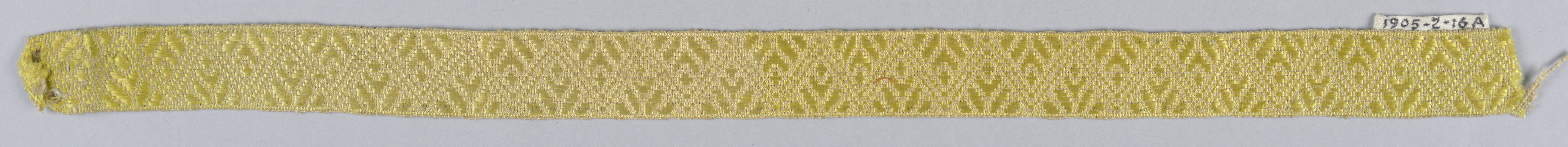 This is a Trimming. It is dated 17th century and we acquired it in 1905. Its medium is silk and its technique is woven. It is a part of the Textiles department.
