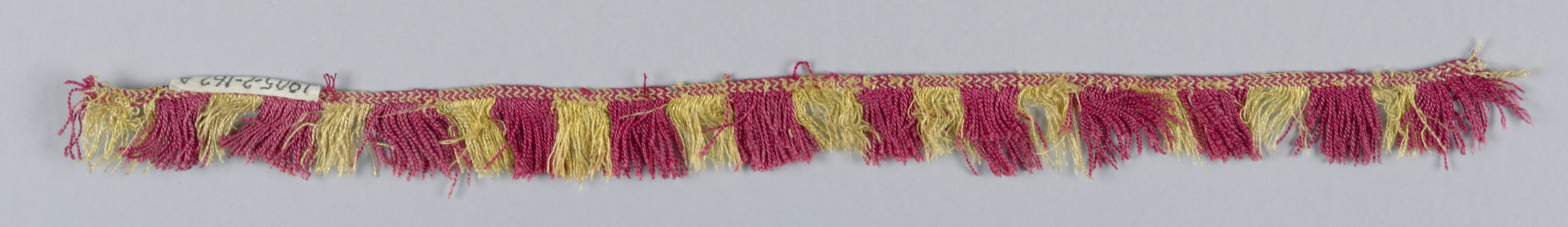 This is a Fringe. It is dated 16th century and we acquired it in 1905. Its medium is silk and its technique is woven. It is a part of the Textiles department.