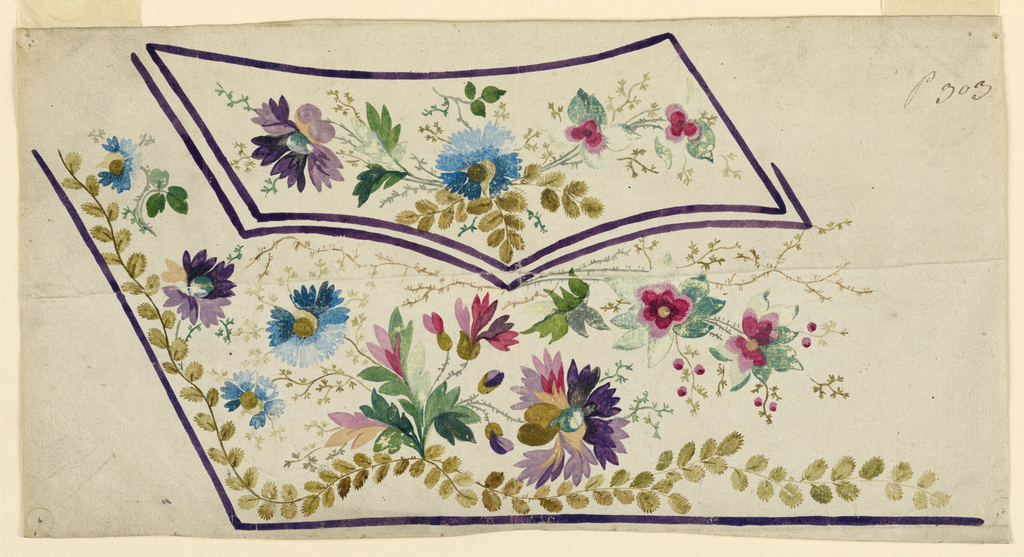 Drawing, Design for a Waistcoat; France; various gouaches on paper; 18.3 × 34.3 cm (7 3/16 × 13 1/2 in.); Gift of Jacob H. Schiff; 1906-21-188