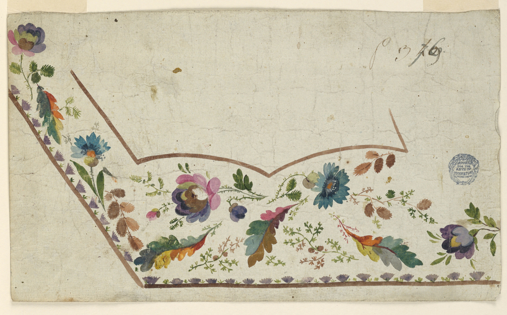 Drawing, Design for a Waistcoat; France; various gouache on paper; 18.3 × 31 cm (7 3/16 × 12 3/16 in.); Gift of Jacob H. Schiff; 1906-21-192