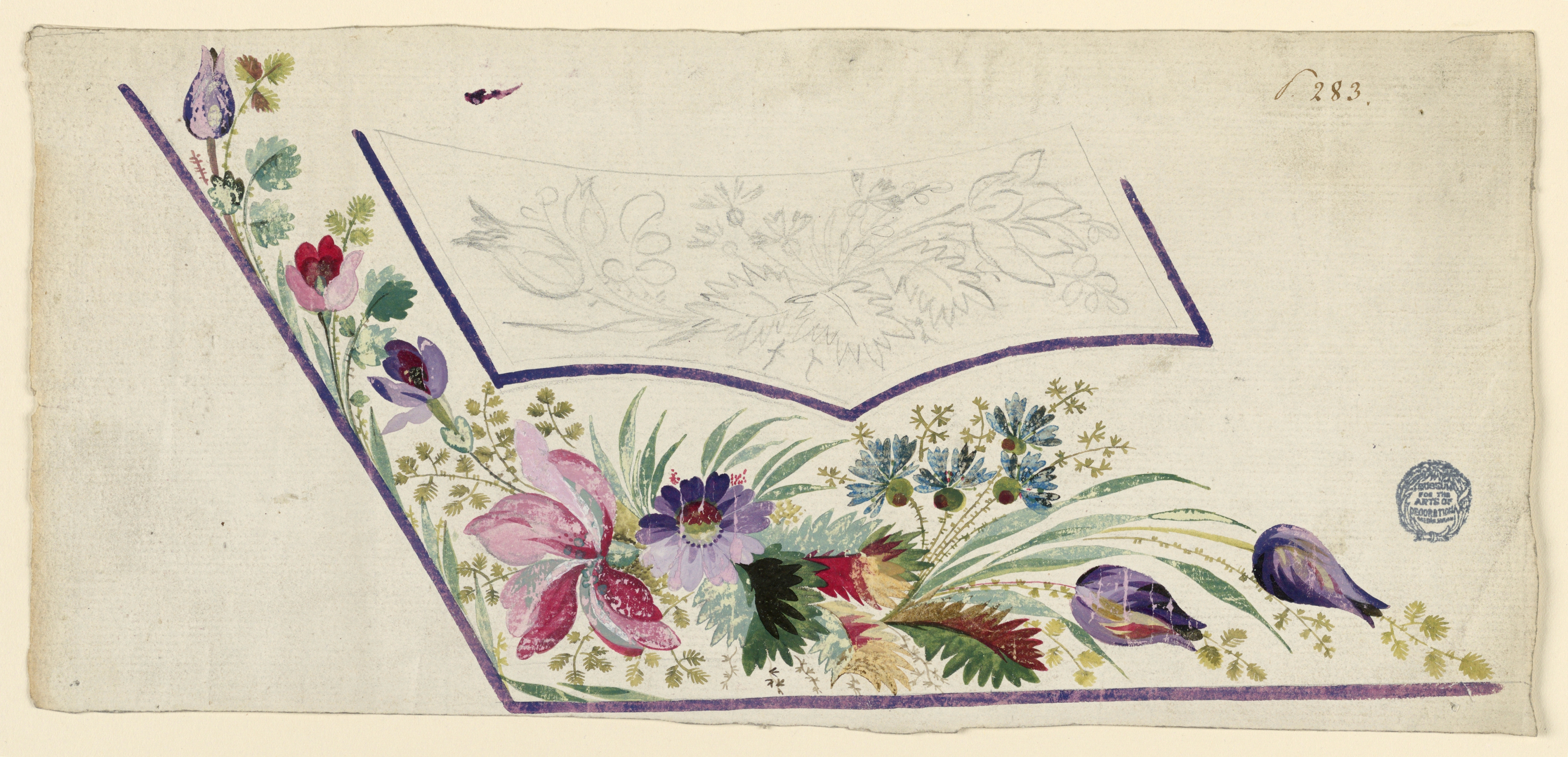 Drawing, Design for a Waistcoat; France; black crayon and various gouaches on paper; Gift of Jacob H. Schiff; 1906-21-194