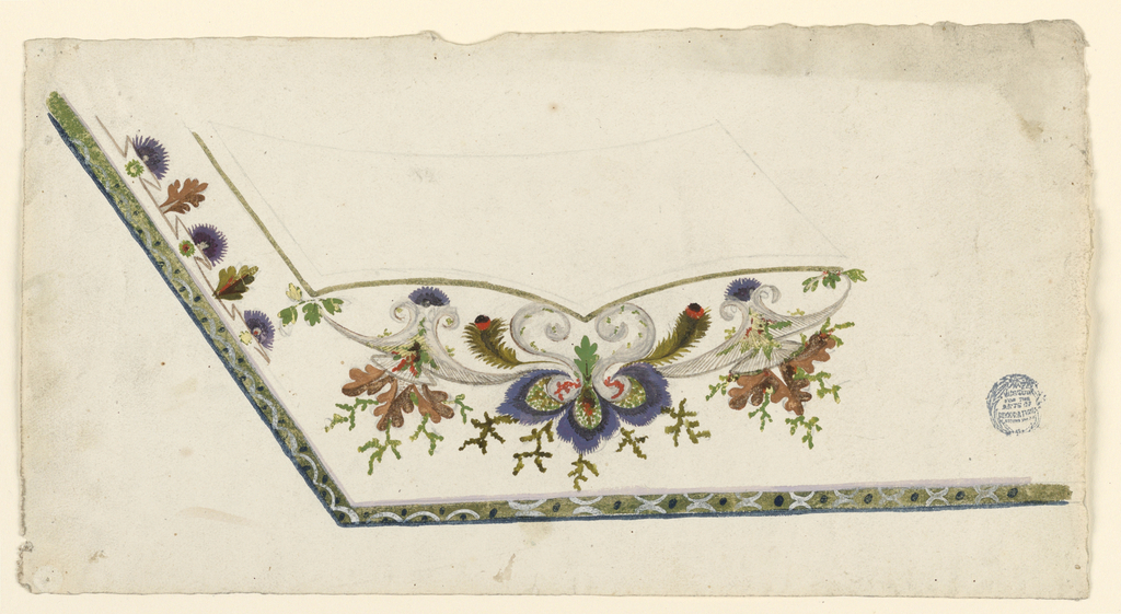 Drawing, Design for a Waistcoat; France; pencil and various gouaches on paper; 18.2 × 33.9 cm (7 3/16 × 13 3/8 in.); Gift of Jacob H. Schiff; 1906-21-197