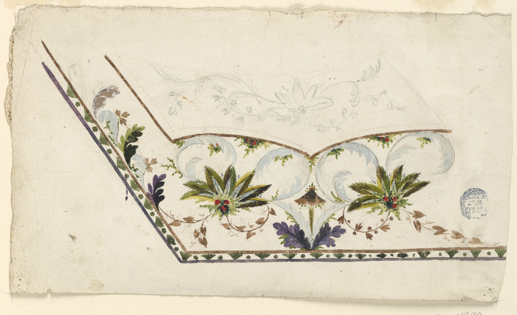 Drawing, Design for a Waistcoat; France; pencil and various gouaches on paper; 16 × 32.4 cm (6 5/16 × 12 3/4 in.); Gift of Jacob H. Schiff; 1906-21-198