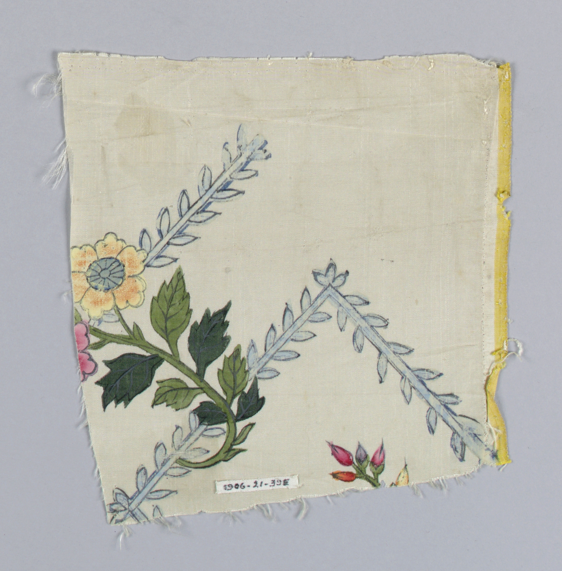 This is a Fragments. It is dated 18th century and we acquired it in 1906. Its medium is silk and its technique is printed and painted on plain weave. It is a part of the Textiles department.