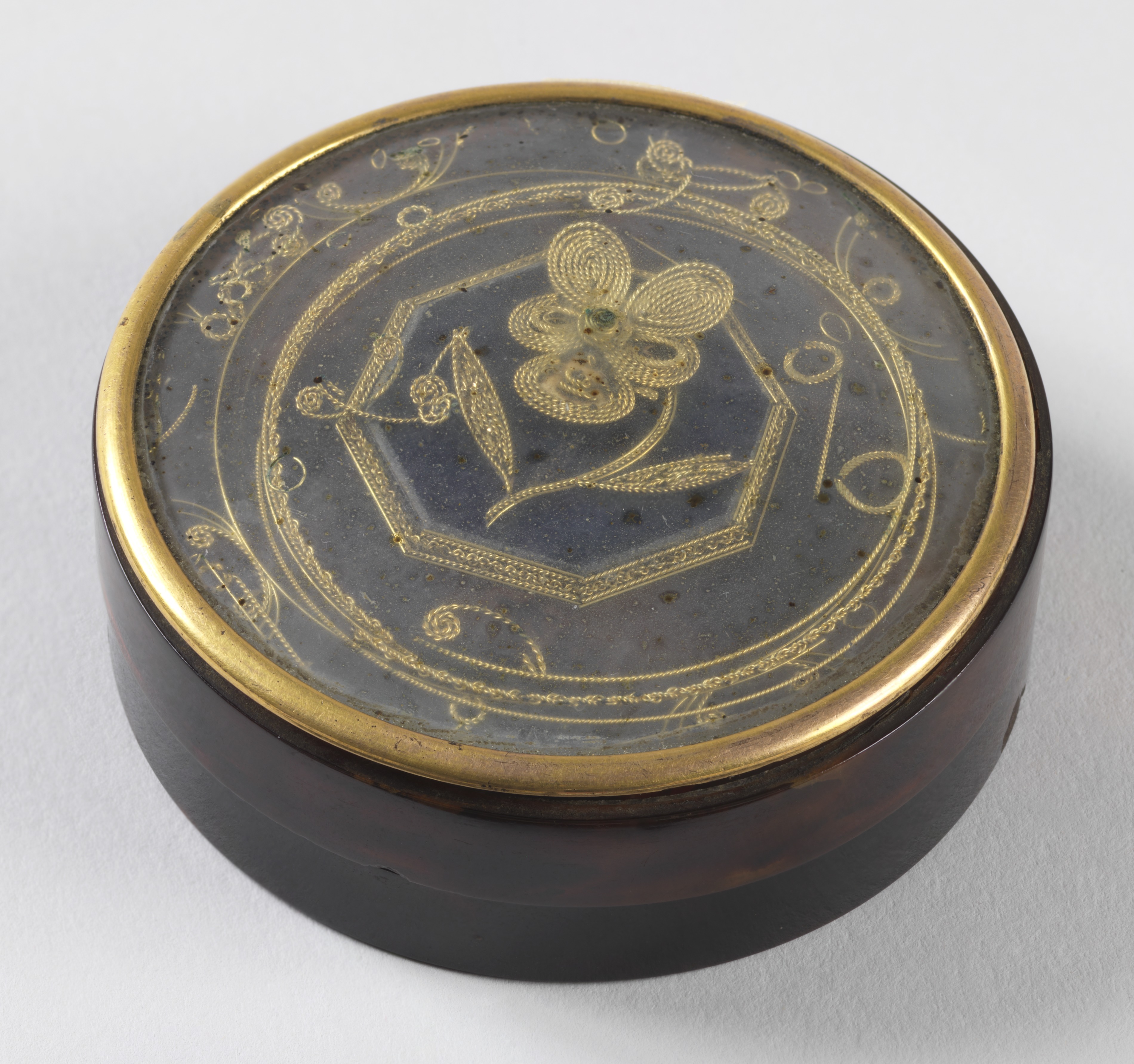 This is a Box. It is dated ca. 1785 and we acquired it in 1908. Its medium is tortoiseshell. It is a part of the Product Design and Decorative Arts department.