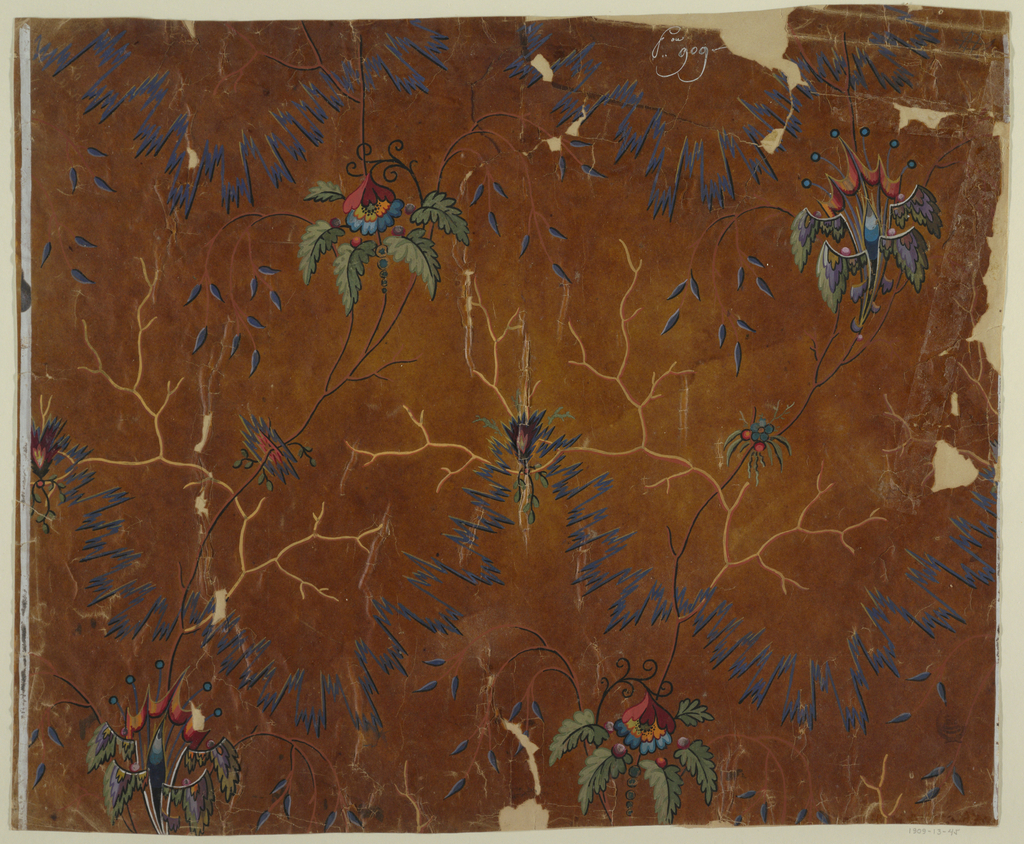 Drawing, Design for a Woven Fabric; France; brush and gouche, brush and black paint on oily tracing paper; 40.7 × 49 cm (16 in. × 19 5/16 in.); Gift of Eleanor and Sarah Hewitt; 1909-13-45