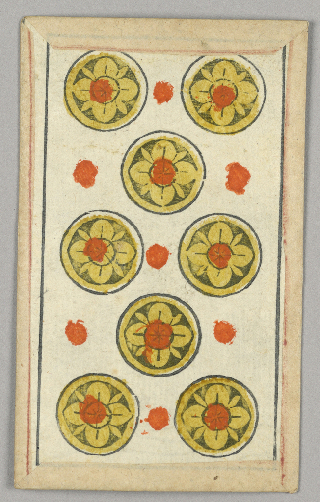 This is a Playing Card. It is dated 17th century and we acquired it in 1909. Its medium is stencil-colored woodblock print. It is a part of the Drawings, Prints, and Graphic Design department.