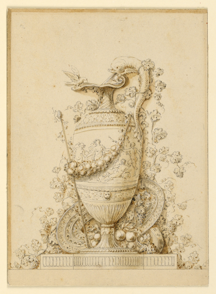 Drawing, Design for a panel decoration showing a ewer, for a plate in the "Recueil d' Ornements"