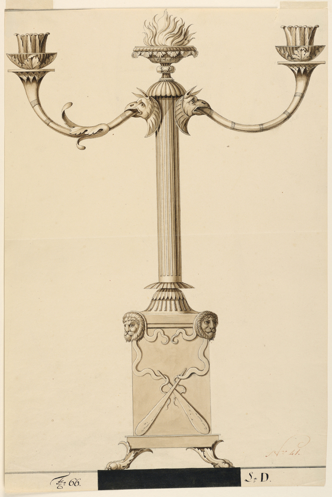 Drawing, Design for a Candlestick; Attributed to Johann Nepomuk; Germany; pen and black ink, brush and wash on paper; 43.6 x 29.3 cm (17 3/16 x 11 9/16 in.); Purchased for the Museum by the Advisory Council; 1911-28-358