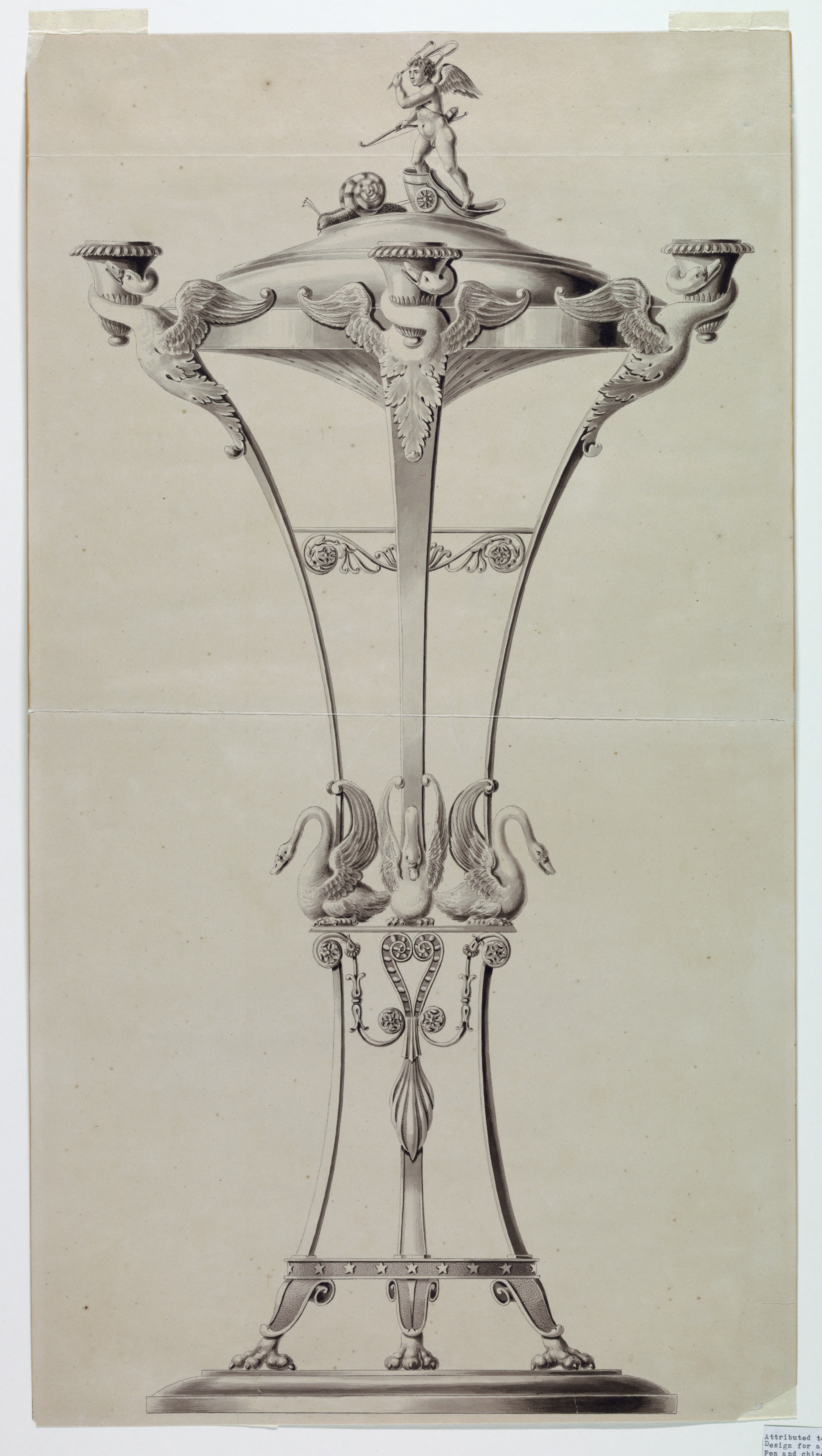 Drawing, Design for a Candlestick; Designed by Joseph Anton Seethaler II (German, 1799–1868); Germany; pen and ink on paper; 62.6 × 34.5 cm (24 5/8 × 13 9/16 in.); Purchased for the Museum by the Advisory Council; 1911-28-501