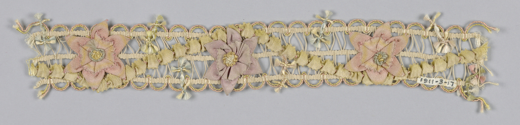 This is a Trimming. It is dated ca. 1902 and we acquired it in 1911. Its medium is silk and its technique is woven. It is a part of the Textiles department.