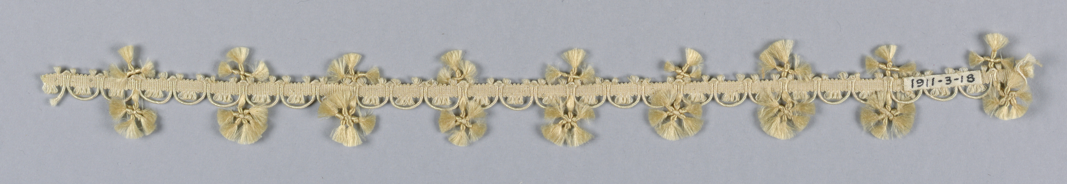 This is a Dress trimming. It is dated 19th century and we acquired it in 1911. Its medium is silk and its technique is woven. It is a part of the Textiles department.