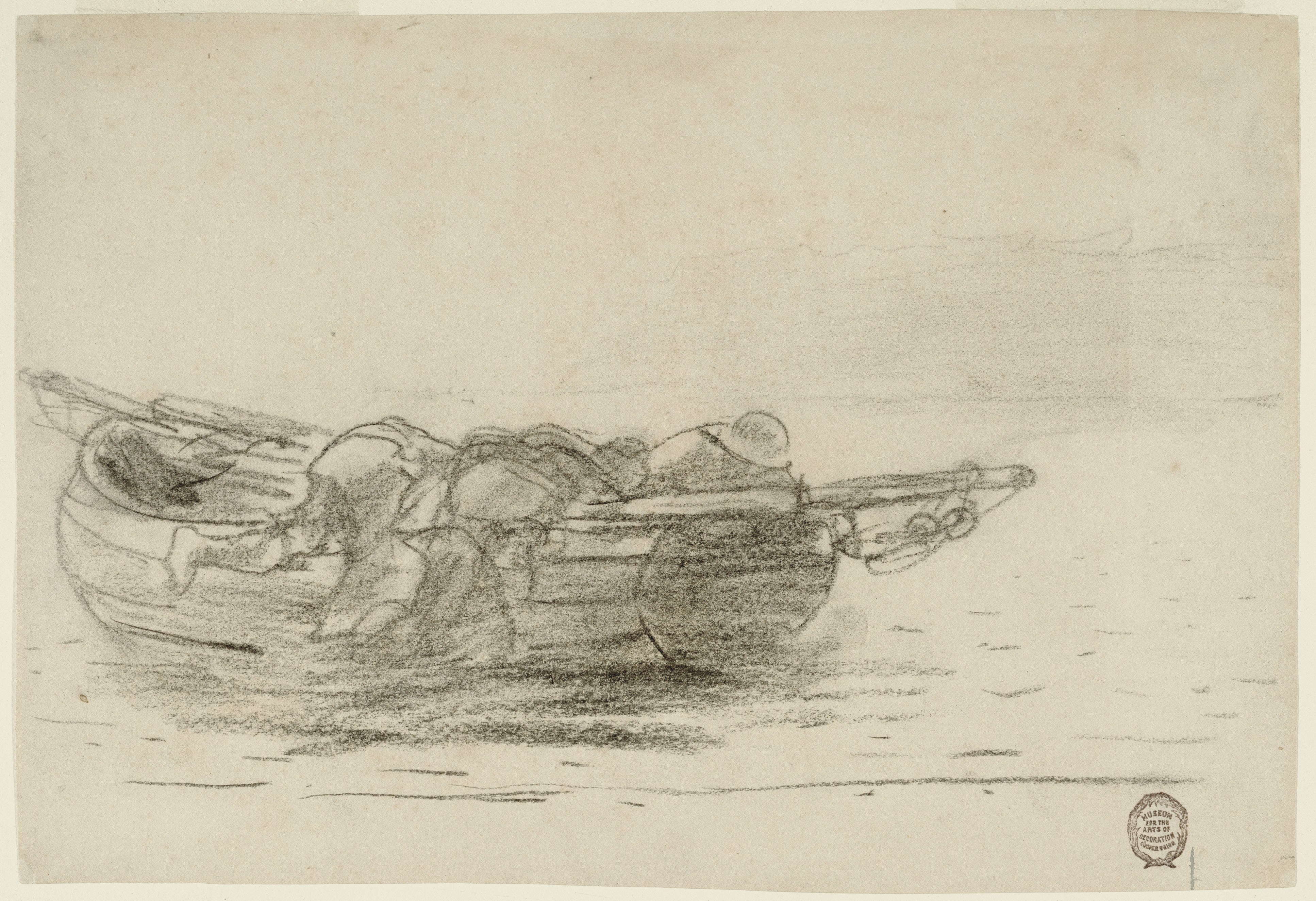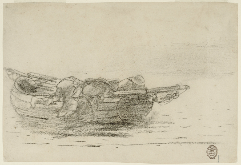 Drawing, Fishermen Climbing over Gunwales, Cullercoats, England; Winslow Homer (American, 1836–1910); England; charcoal on heavy cream wove paper; 21 x 31.3 cm (8 1/4 x 12 5/16 in.); Gift of Charles Savage Homer, Jr.; 1912-12-21